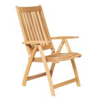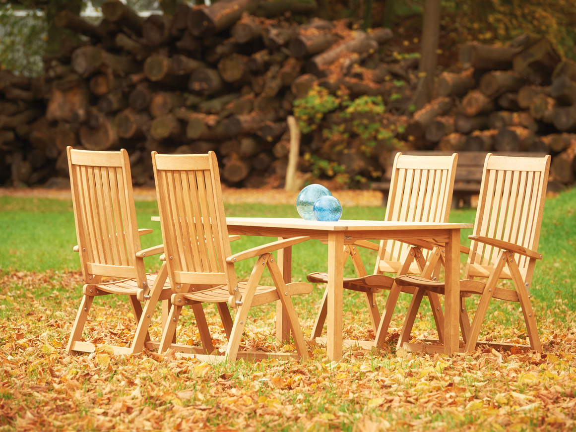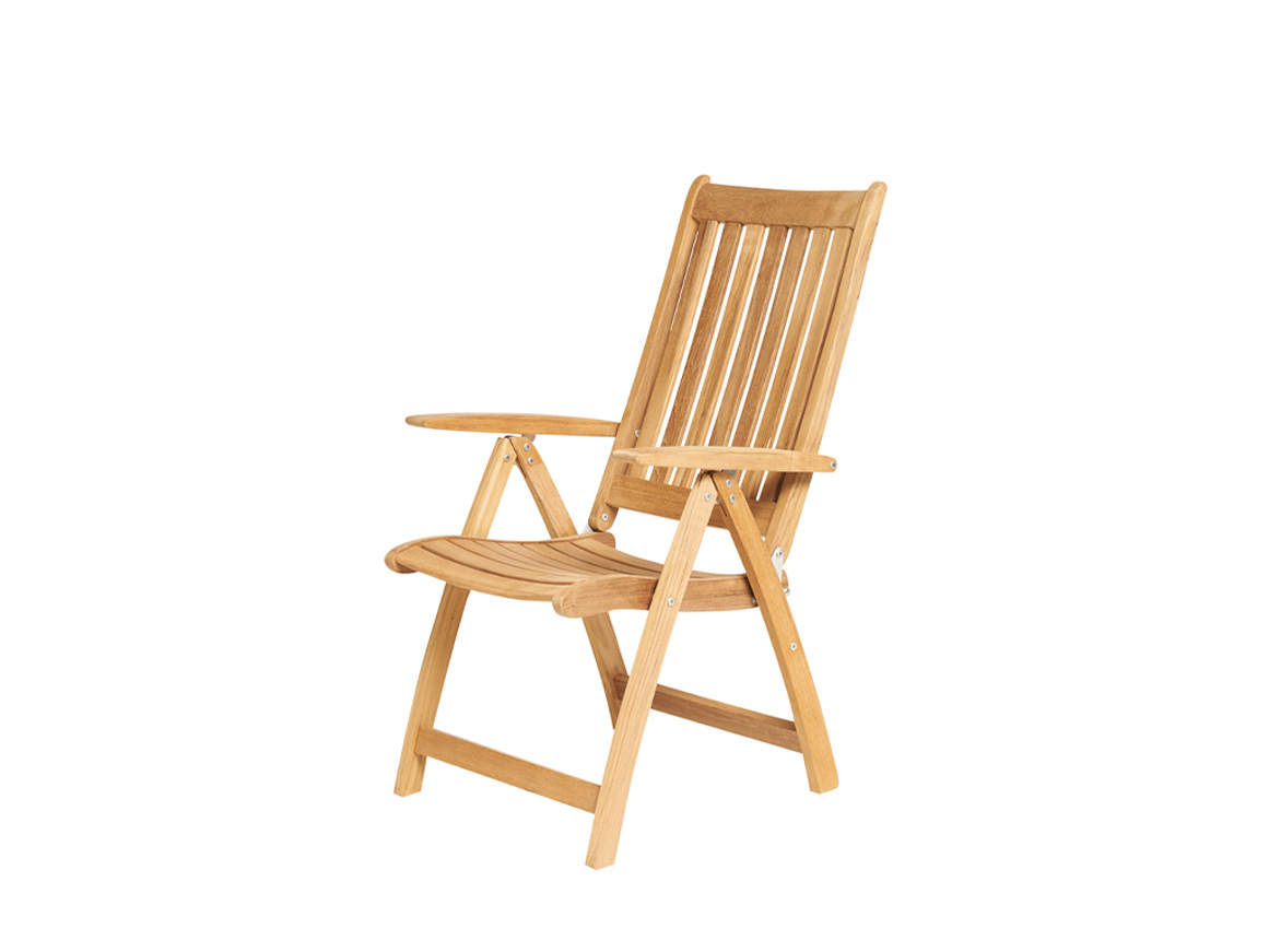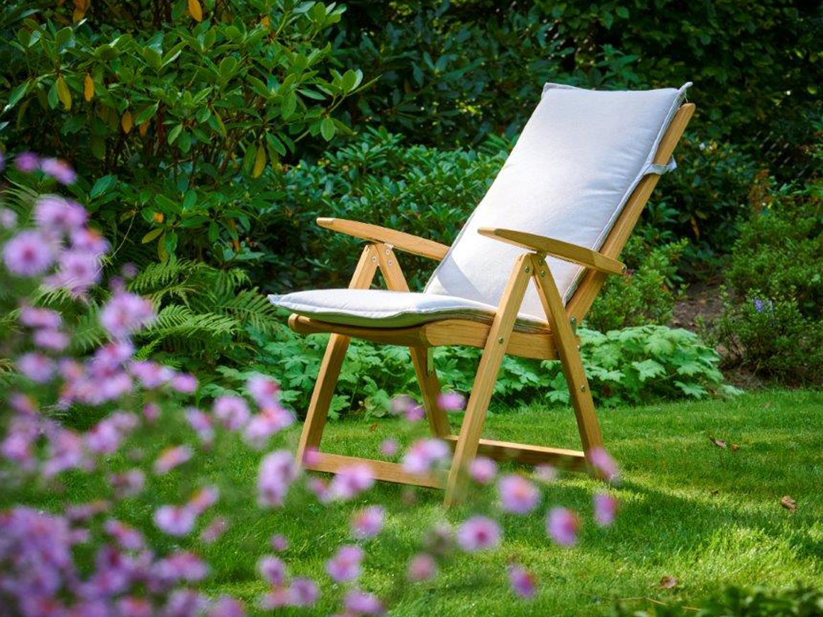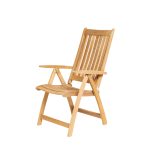 De ALEXIA recliner met zijn kenmerkende hoge rugleuning heeft daarnaast een hoogwaardige afwerking en een modern design. De teakhouten recliner past goed aan één van onze ronde – als aan diverse van onze langere tafels. Dankzij de doordachte details overtuigt de stoel met het hoogste comfort.