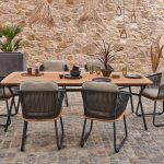 Met 6 bijbehorende stoelen voorzien van zit en rugkussen.