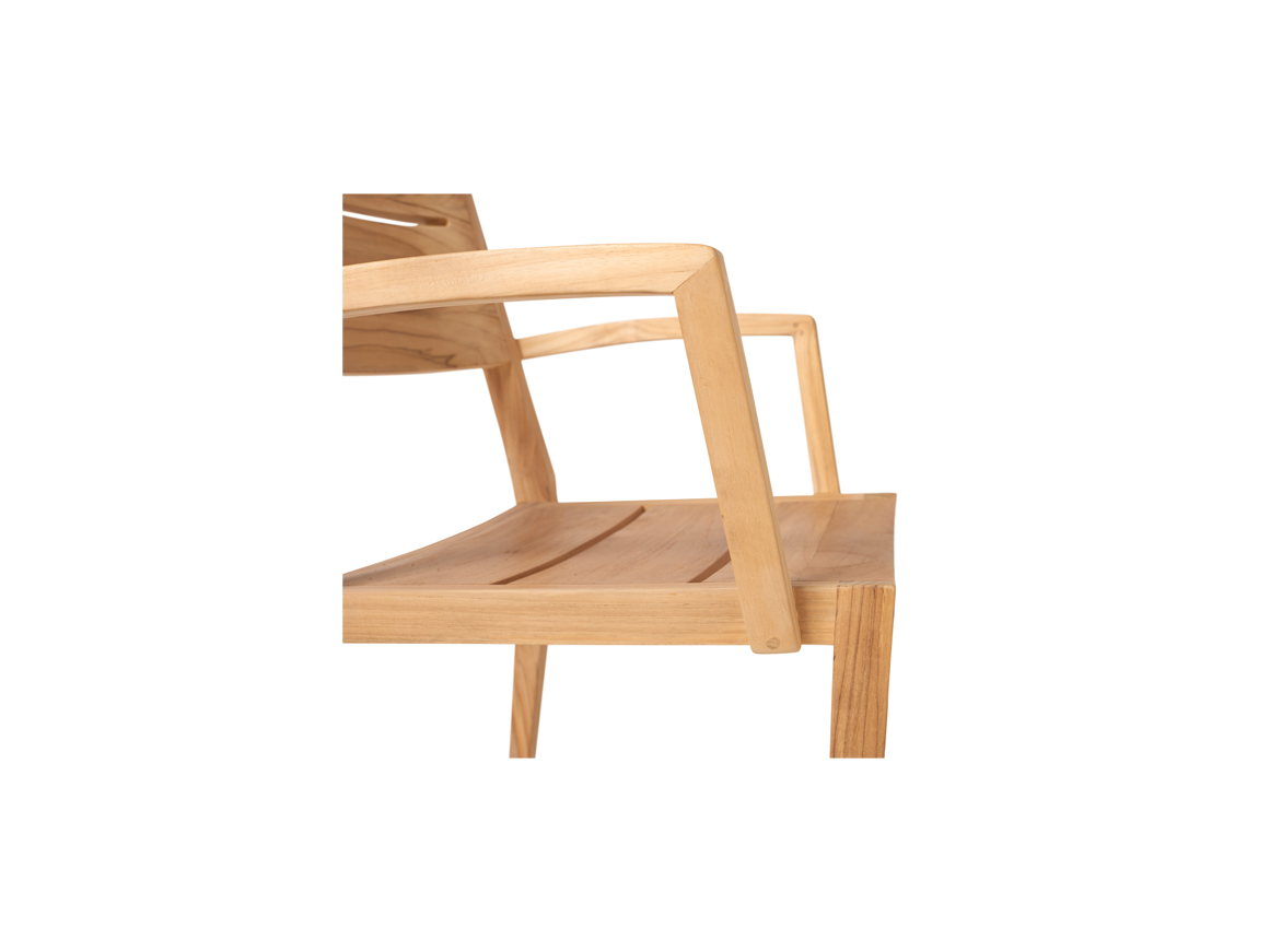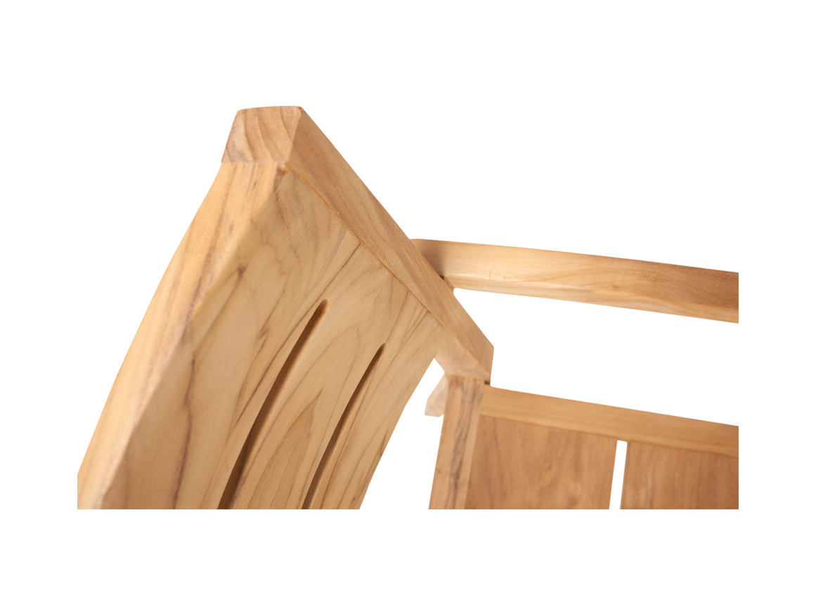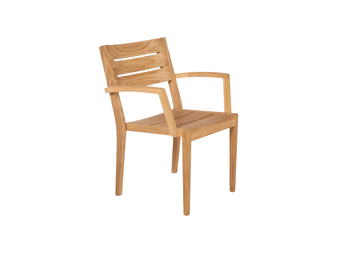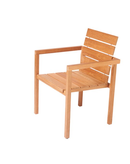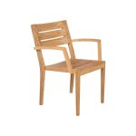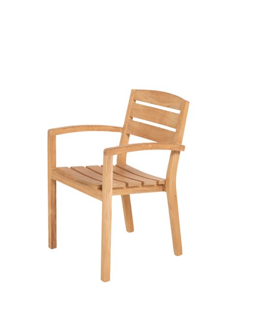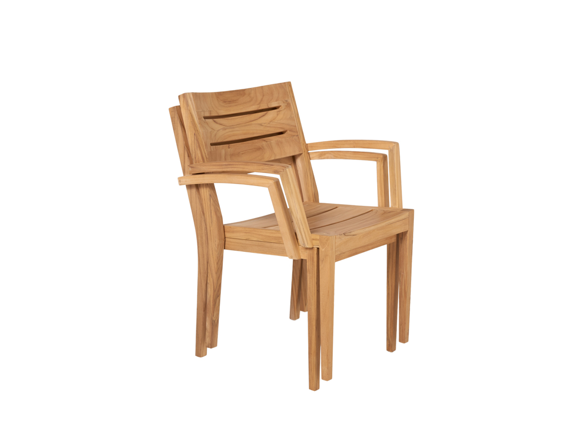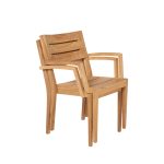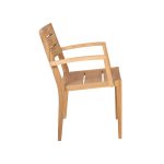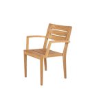 Teakhouten stapelbare armstoel van het merk Traditional Teak, model Maxima. Afmetingen: 61x55x88 (lxdxh).