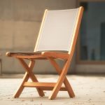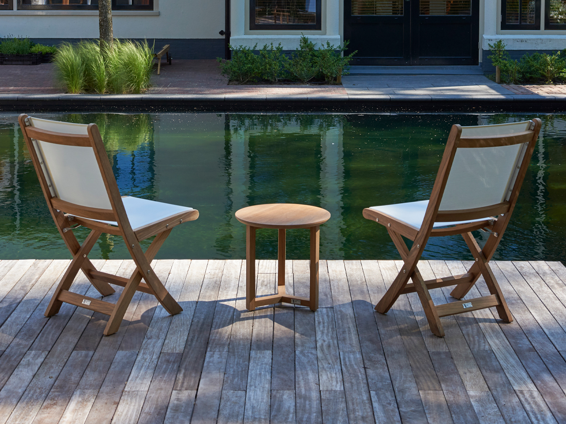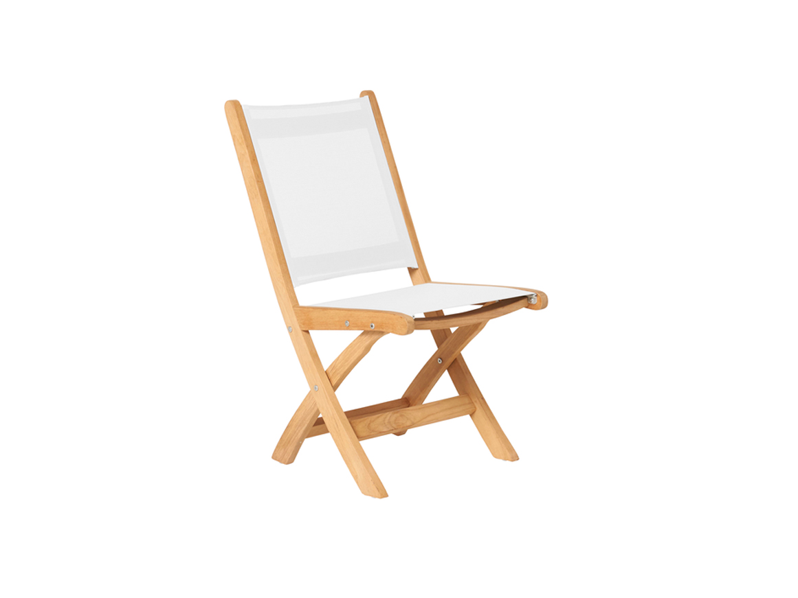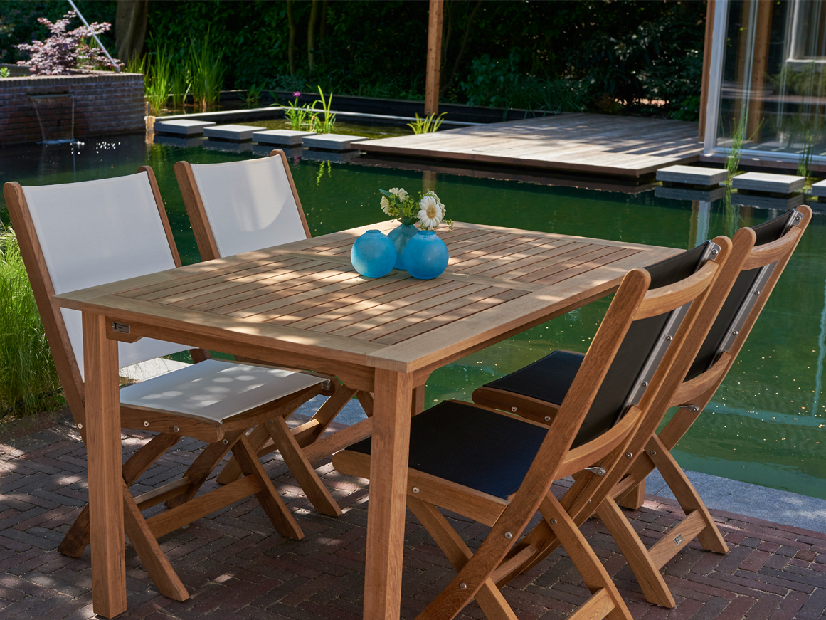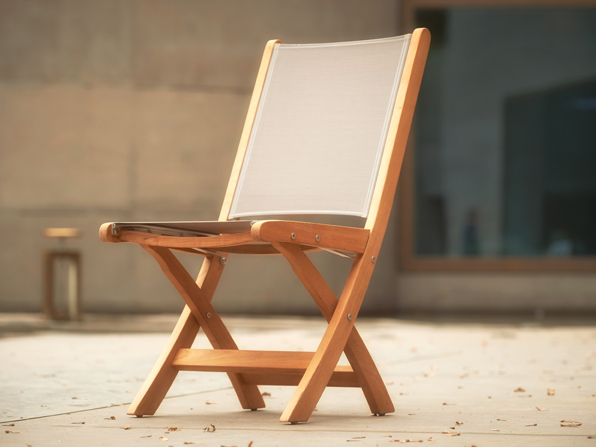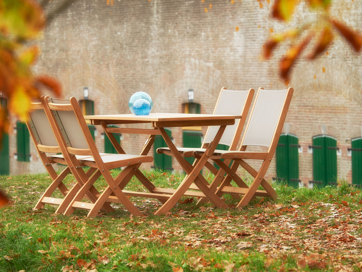 Praktische inklapbare teakhouten stoel met moderne en maritieme uitstraling