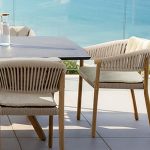 De MARCELLA dining chair – flat rope Linen, ontworpen door Povl Eskildsen, is een verfijnde variant van het bestaande ontwerp waarin teakhout, vlak geweven rope en gepoedercoat aluminium samenkomen. Deze uitvoering kenmerkt zich door het flat rope in de kleur Linen met bijpassende kussens en is momenteel uitsluitend verkrijgbaar als dining chair.