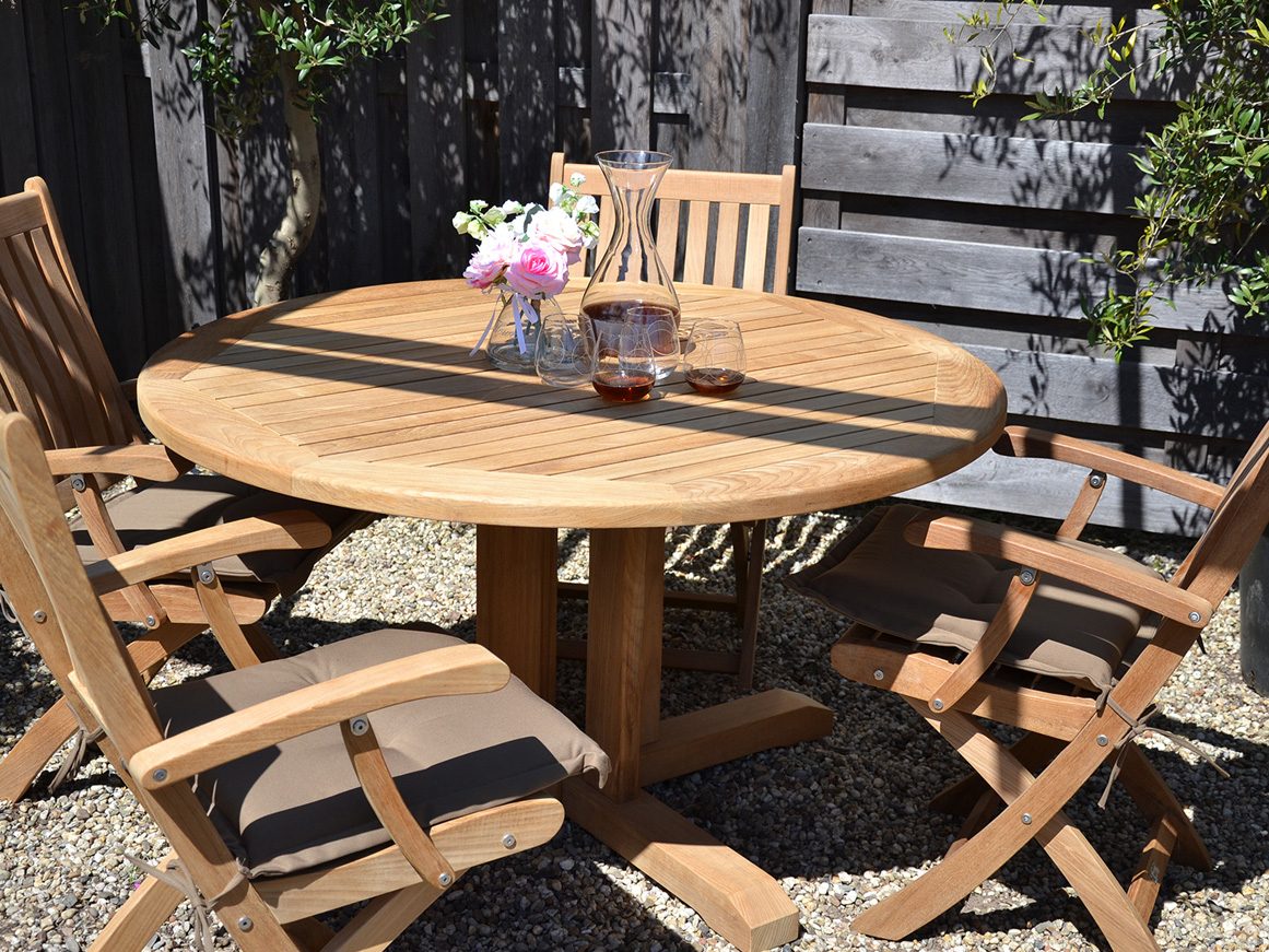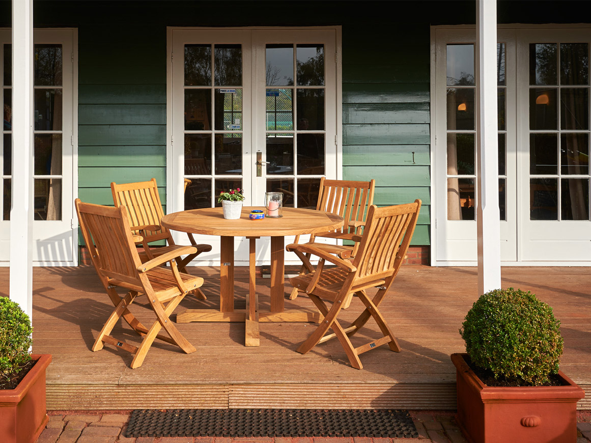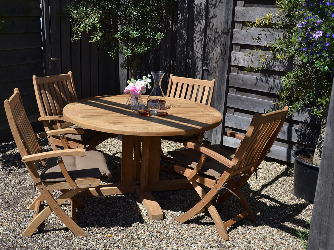 DE VICTORIA folding armchair is gemaakt van hoogwaardig teakhout en is met zijn natuurlijke, vloeiende uitstraling de perfecte aanvulling voor uw buitenruimte.